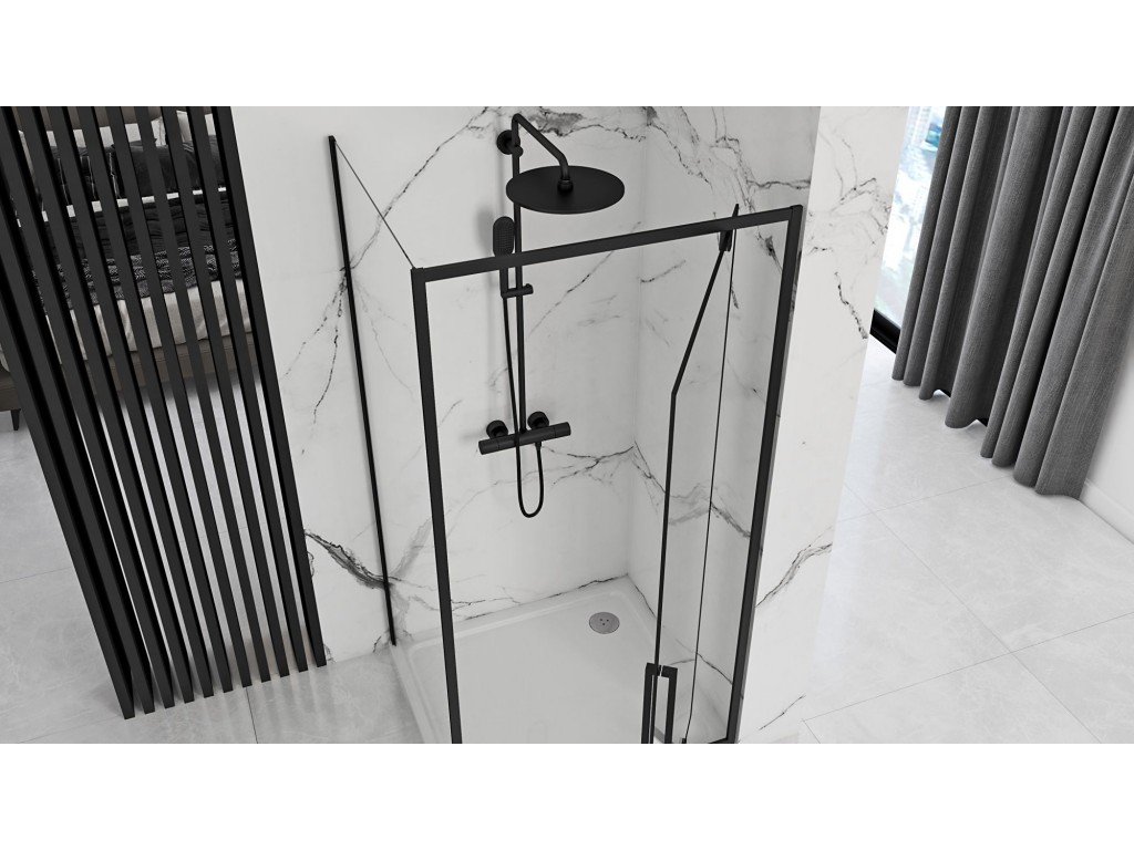 REA/S - SPRCHOVÝ KOUT RAPID SWING dveře 100 / stěna 90 - černé KPL-009929
