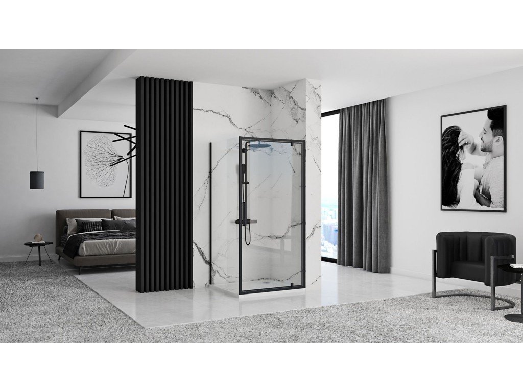 REA/S - SPRCHOVÝ KOUT RAPID SWING dveře 90 / stěna 90 - černé KPL-009926