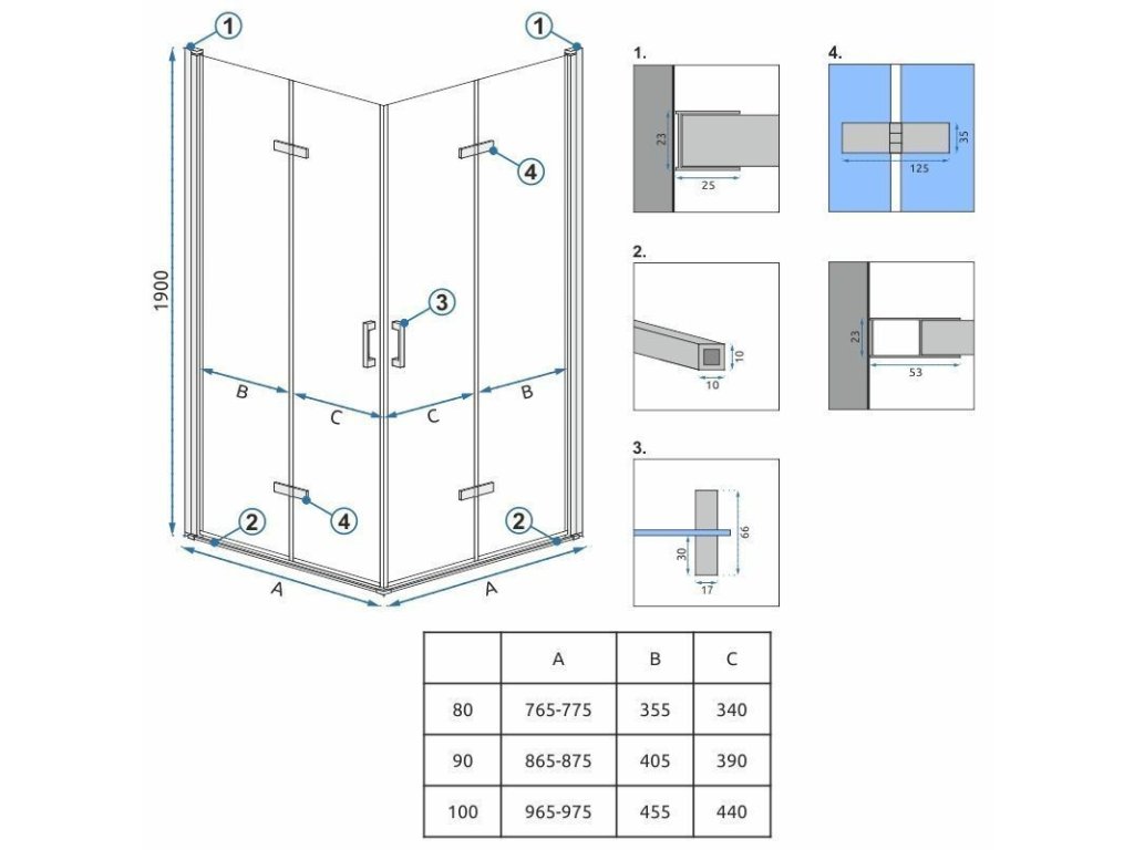 Kabina Molière se skládá ze dvou prosklených dveří zdobených elegantními chromovanými prvky. Tento model je ideálním řešením pro malé a jedinečné koupelny. Dveře lze přiklopit ke stěně. Dává neomezené možnosti praktického využití koupelny. V prostoru pro cestující je sklo nejen bezpečné, ale také praktické díky povrchové úpravě Easy Clean. Díky této moderní technologii se na skle neusazuje vodní kámen a nejsou potřeba žádné silné čisticí prostředky. NávodDoplňkové parametry
