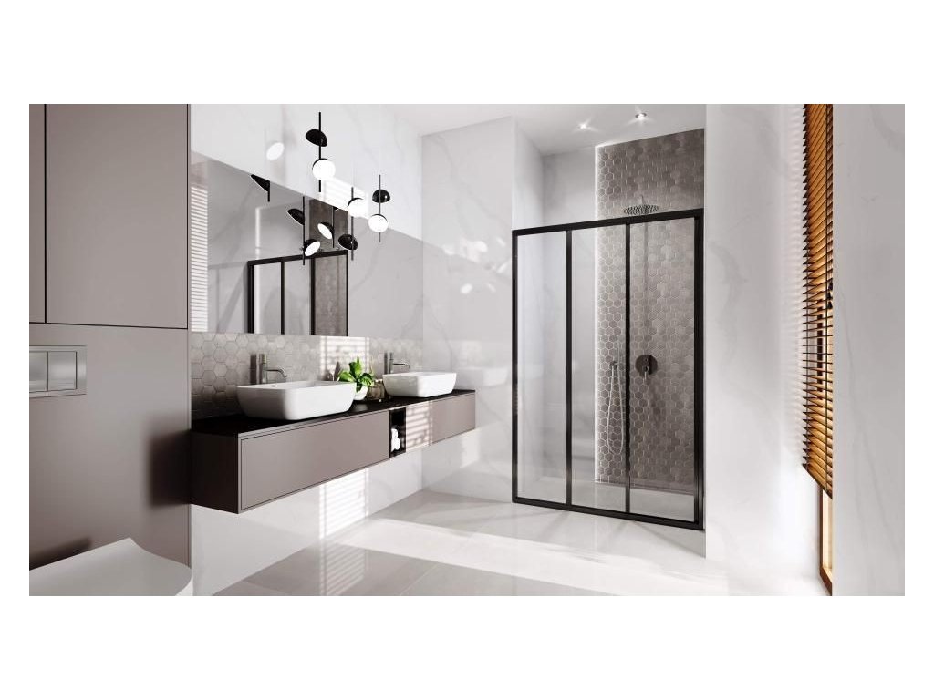 Představujeme vám moderní a extrémně funkční sprchové dveře typu Alex. Jedná se o výrobek, který dokonale vyplní prostor vaší koupelny při zachování dokonalého vzhledu a estetiky interiéru. Dveře lze díky své konstrukci namontovat na sprchovou vaničku nebo přímo na podlahu s lineárním odtokem. Vhodné sprchové vaničky a žlaby naleznete na našich dalších aukcích. Díky ukončovacím prvkům v černé barvě je náš výrobek mimořádně elegantní a zároveň univerzální a jistě zapadne do výzdoby vašeho pokoje, ať už se jedná o koupelnu v moderním nebo klasickém stylu. Dveře Alex se skládají z jednoho pevného prvku a dvou posuvných prvků. Nakonec je směr dveří pravostranný. Chcete-li změnit směr dveří na levou stranu, v krajním pohyblivém prvku s vyčnívající lištou v podobě kliky odšroubujte svislé profily a přesuňte je na druhou stranu skla. Pokyny pro ruční otáčení dveří CAD