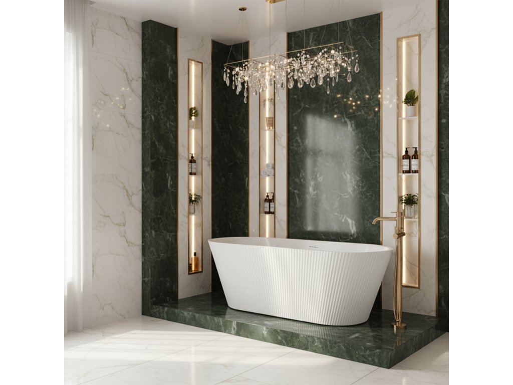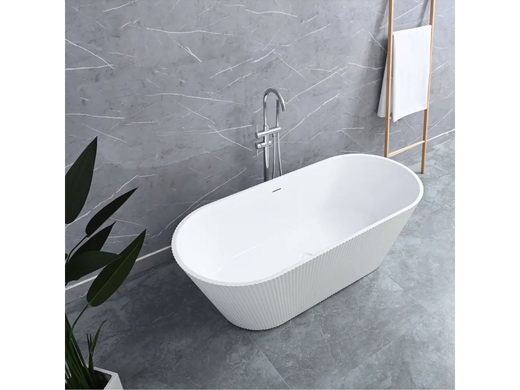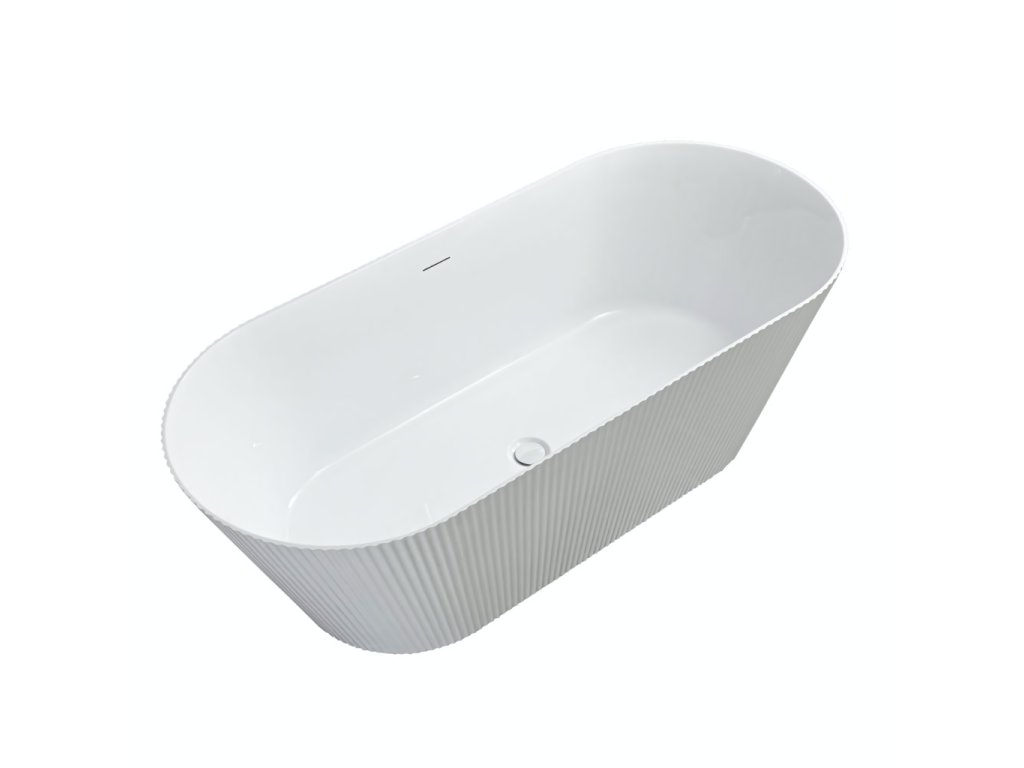 Vana Ofelia je dokonalou kombinací designu a funkčnosti, vytvořená pro ty, kteří si cení pohodlí a vytříbené estetiky. Její rýhovaný povrch dodává celku jedinečný charakter a přináší jemný dekorativní prvek, který podtrhuje moderní styl koupelny. Vyrobena z vysoce kvalitního akrylu, vana Ofelia zaujme dokonale hladkým povrchem a odolností proti poškrábání, přičemž je lehká a trvanlivá. Akryl výborně udržuje teplotu vody, což umožňuje dlouhé a relaxační koupele. Ergonomický tvar zajišťuje pohodlnou oporu těla a maximální komfort i při delším odpočinku. Díky své volně stojící konstrukci lze vanu Ofelia umístit kamkoliv v koupelně — ke zdi, do rohu nebo doprostřed místnosti, čímž vytváří elegantní a harmonický prostor. Rýhovaná boční struktura krásně odráží světlo a dodává interiéru hloubku a kouzlo.Doplňkové parametry
