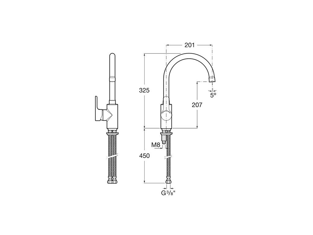 Roca L20 dřezová stojánková baterie s vysokým výtokem, chrom (A5A8409C00)