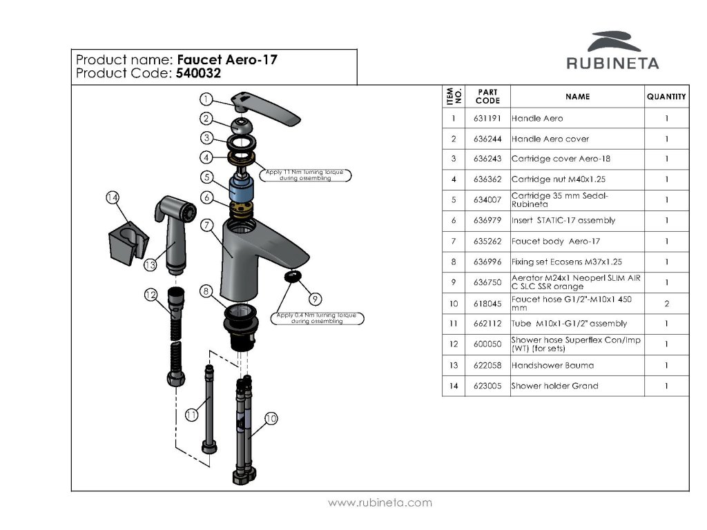 Rubineta - Umyvadlová baterie s bidetovou sprškou AERO-17