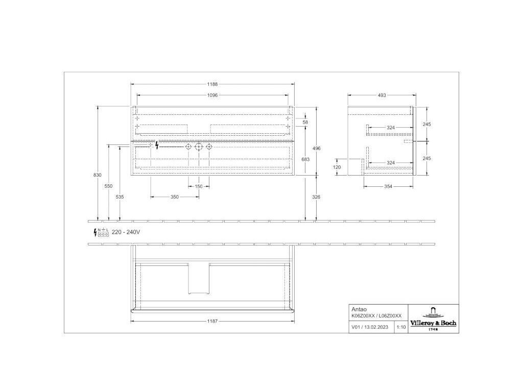 Villeroy & Boch Antao skříňka pod umyvadlo 78,8x50,4 cm, 2x zásuvka, Black Matt Lacquer (K04000PD)