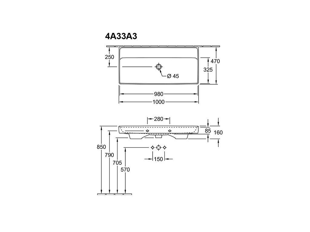 Villeroy & Boch Collaro umyvadlo 100x47 cm, bez otvoru pro baterii, bez přepadu, CeramicPlus, bílá Alpin (4A33A3R1)